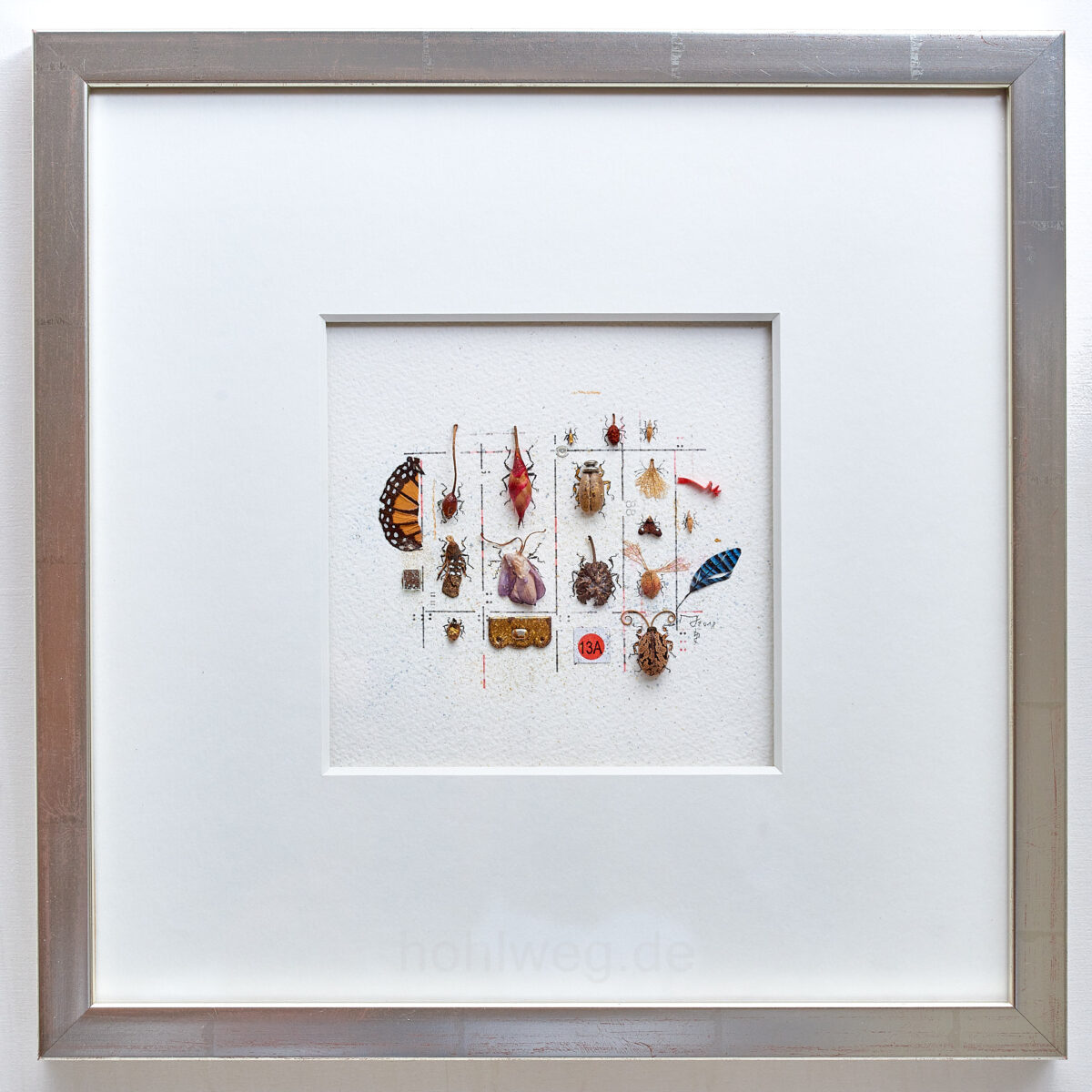 The collage Insect collection 13A unfolds its effect at second glance. The works are small-format, deliberately restrained and demand proximity. Structure, material and reinterpretation only become visible on closer inspection.