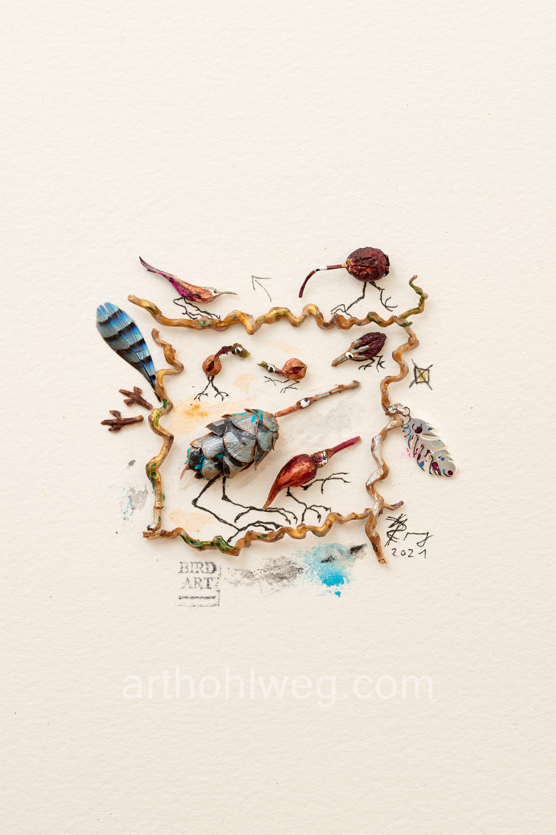 Diese Sammlung gleicht einem kleinen Spaziergang durch die scheinbaren und unscheinbaren Welten der Miniaturcollagen. Jedes Motiv basiert auf Fotografien, die mit hohem Aufwand entstanden sind: Mehrere Aufnahmen wurden übereinandergelegt, um in den Makroaufnahmen eine ausreichende Schärfentiefe zu erzielen.