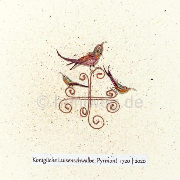 Benannt habe ich sie nach der auch heute noch sehr bedeutenden Heilquelle Bad Pyrmonts, dem Hylligen Born. Das Wasser dieser Quelle, das für Trinkkuren eingesetzt wird, ist ein Magnesium-Sulfat-Calcium-Hydrogencarbonat-Säuerling. So ein komplexer Name bringt natürlich einen echten Charaktervogel hervor! Auch ist er ein quirliger und geselliger Vogel, wie man sehen kann.